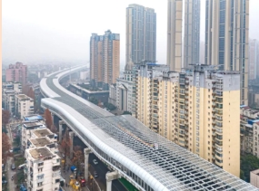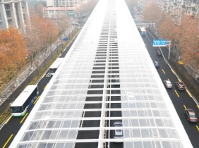 项目设计团队始终秉持 “轻量化、智能化、绿色化” 理念,多项技术应用填补区域空白,树立行业新标杆。在铺装材料与工艺上,主线高架钢箱梁桥面采用浇注式沥青铺装,相比传统方案减重16%,既降低桥梁结构负荷、提升安全性,又缩短施工周期;钢箱梁采用U肋全熔透智能焊接,大幅提高结构疲劳寿命,积极推进钢箱梁U肋焊接工艺的发展。尤为引人注目的是,本项目集中展现了三大创新亮点:它拥有全国最长的连续全封闭声屏障,是湖北省首例“光伏+市政”的融合实践,更在武汉率先实现了声屏障光伏发电的应用,为绿色市政建设树立了新的样板。