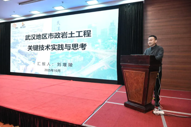 会上,武汉市政院岩土专业高级工程师刘堰陵作为报告嘉宾,作了题为《武汉地区市政岩土工程的实践与思考》专题报告,分享了武汉市政院岩土博士创新工作室近一年来的三项核心成果。