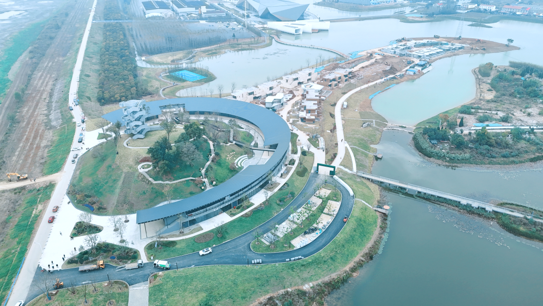 水域通过破塘还湖营造大水面,南侧岸线结合永久会址、湿地展创中心、如意巷进行滨水景观岸线营造活力水岸,衔接三大建筑群,串联活动及展示功能;西岸结合现状吸引鸟类湖塘营造鸟语水岸,构建湿地栖鸟观鸟空间;北岸以最小干预原则,以生态岸线营造为主构建生境水岸;东岸延续现状荷塘风貌构建花塘水岸,同时结合城镇开发边界为远期策划预留弹性空间。