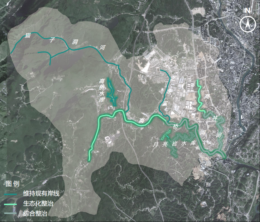 郊野休闲板块 依托月亮岩水库垂钓资源、高桥河自然风貌开发文创服务、山野体验等业态