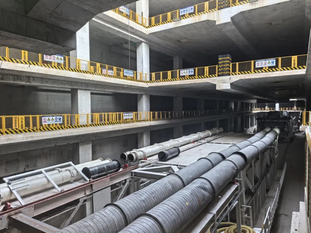 新港线西延线余家头站作为我院主持设计的首座轨道交通越江大盾构始发站,该站以35米的最大开挖深度、复杂敏感的建设环境、多项技术难点,成为全线建设的控制性节点之一,车站地处长江一级阶地,基坑位于40米承压含水层中,紧邻长江大堤,距既有5号线结构仅14米,东西两侧分别紧贴老旧改造建筑与同期施工的140米超高层建筑,在如此高难度的环境下,项目还需应对施工期顶板全覆土回填、中板与中柱无法实施、结构横向跨度达18米、竖向跨度达17米等诸多技术挑战,运营期还需凿除站厅边柱,形成15米单柱双跨空间,设计与安全控制难度空前,面对重重困难,项目设计团队秉承技术先行、服务现场的理念,通过精心组织与技术创新,不仅按时保质完成各阶段供图,更坚持“现场问题不过夜”原则,每周至少开展一次现场巡查,凭借主动服务与前置配合,为车站结构提前封顶提供了坚实技术保障,该项目在极端复杂的建设条件下展现了我院在轨道交通设计领域的综合技术实力与现场服务能力,赢得了业主与施工各方的高度认可,也为后续类似越江大盾构始发车站设计积累了宝贵经验。